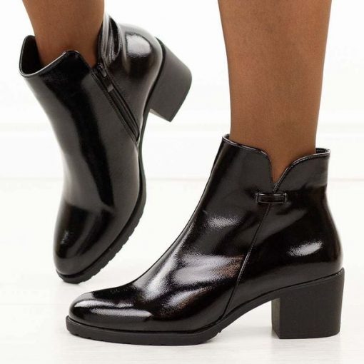 Czarne lakierowane botki damskie na obcasie M.Daszyński Sa128-61