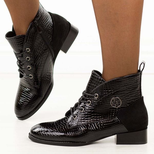 Czarne lakierowane botki damskie Filippo DBT4824/25