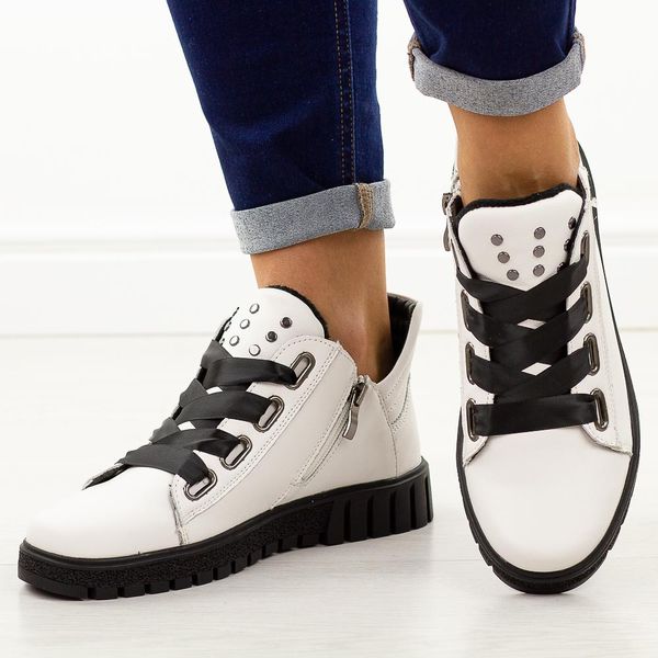 Białe skórzane botki damskie na traperze Filippo Dbt3197/25