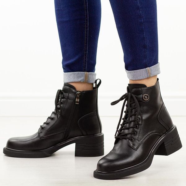 Czarne skórzane botki damskie na obcasie DiA 42-79