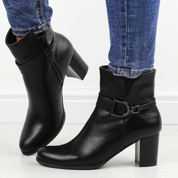 Czarne botki damskie na słupku M.Daszyński Sa125-32