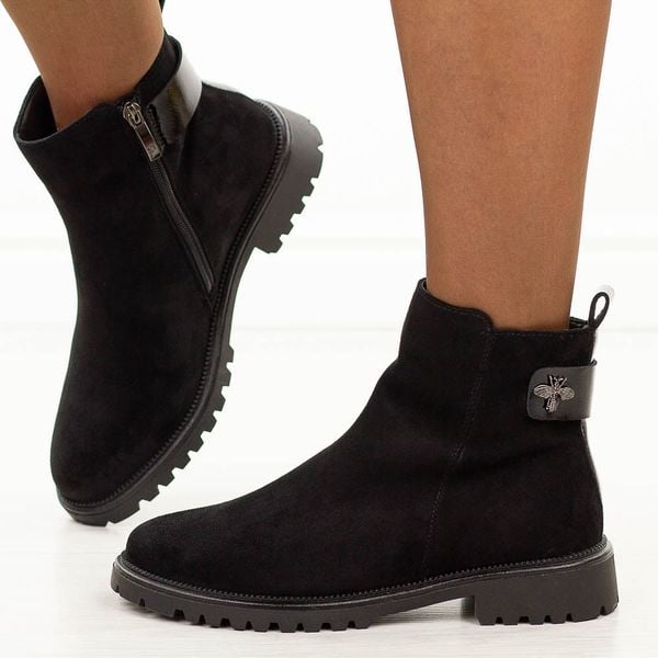 Czarne zamszowe botki damskie na traperze Potocki 19314
