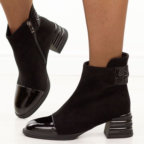 Czarne zamszowe botki damskie na obcasie DiA 52-187