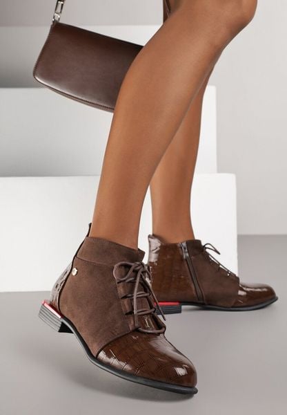 Brązowe Botki Lakierowane Vices Ozdobione Tłoczeniem Uzvila