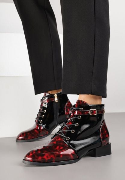 Czarno-Czerwone Botki Vices Zdobione Klamerką Gelisa