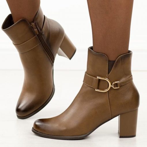 Brązowe botki damskie na słupku M.Daszyński Sa125-32