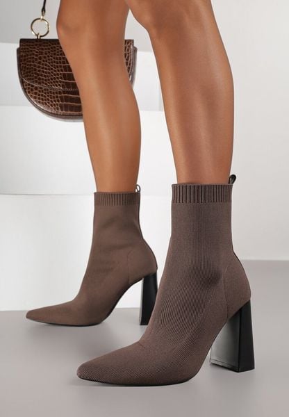 Brązowe Botki Vices na Obcasie o Geometrycznym Kształcie z Elastyczną Cholewką Falurea