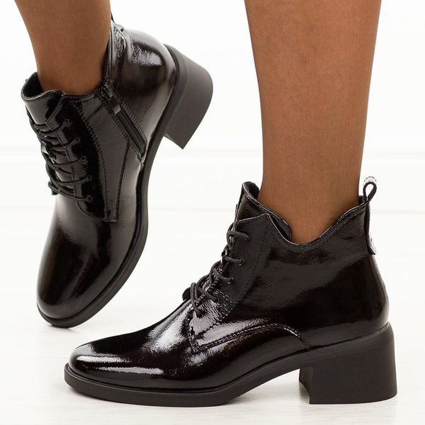 Czarne lakierowane skórzane botki damskie Sergio Leone Bt25439S