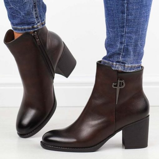 Brązowe botki damskie na słupku M.Daszyński Sa250-4