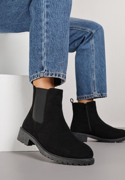 Czarne Botki Sztyblety z Imitacji Zamszu Ozdobione Elastycznym Elementem Clasina