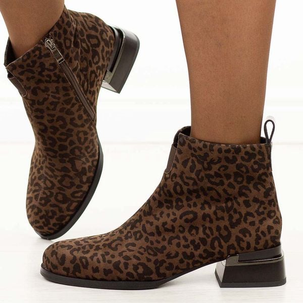 Brązowe cętkowane skórzane botki damskie na obcasie DiA 52-852