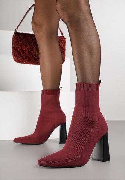 Bordowe Botki Vices na Geometrycznym Słupku ze Skarpetową Cholewką Falunelle