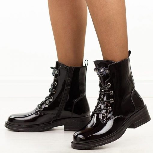Czarne lakierowane wyższe skórzane botki damskie M.Daszyński 2509-1