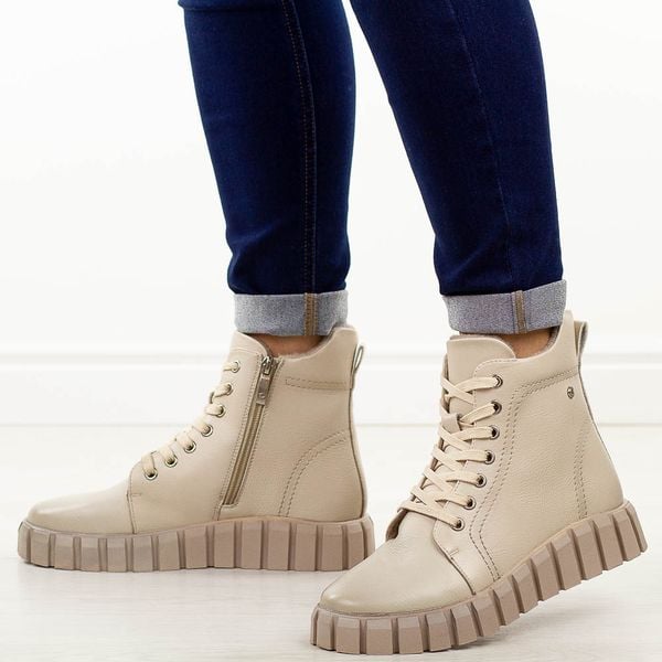 Beżowe botki damskie na chłodną jesień oraz zimę to propozycja dla kobiet, które cenią sobie wygodę, trwałość i modny wygląd w jednym. Stylowa cholewka wykonana z materiału skóropodobnego prezentuje się elegancko i nowocześnie, a praktyczne zapięcie na suwak oraz sznurowanie pozwala idealnie dopasować obuwie do stopy. Klasyczny okrągły nosek sprawia, że buty są komfortowe nawet […]