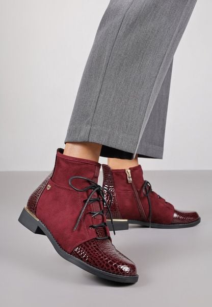 Bordowe Botki Trzewiki Vices Ozdobione Lakierowanymi Elementami Afridde