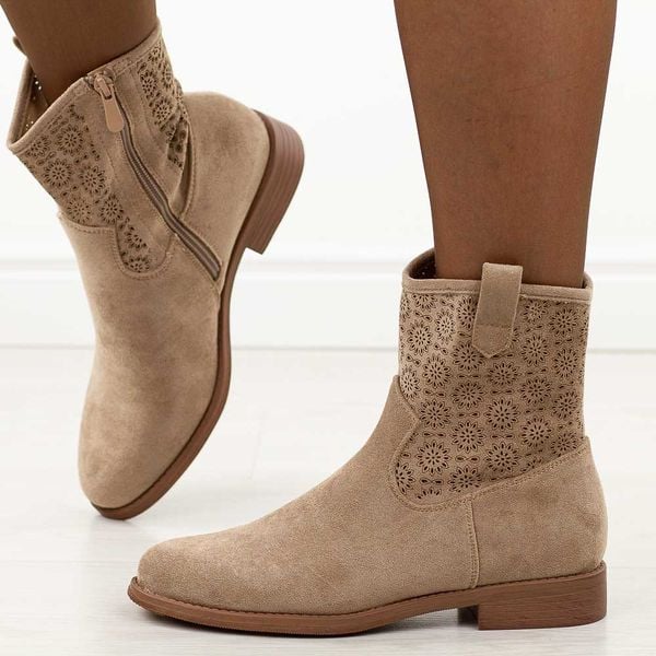 Beżowe jesienne zamszowe ażurowe botki damskie S.Barski 52-530