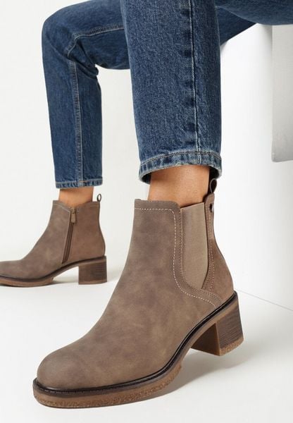 Ciemnobeżowe Botki na Niskim Słupku Raansela