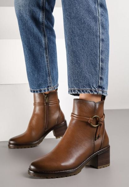 Brązowe Eleganckie Botki Vices na Słupku z Okrągłym Detalem przy Cholewce Widvire