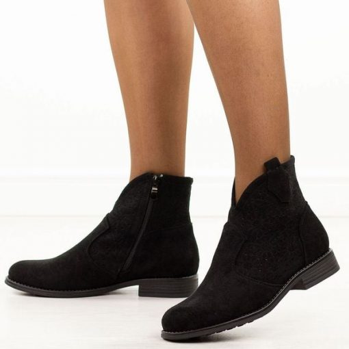 Czarne jesienne zamszowe ażurowe botki damskie S.Barski 52-532