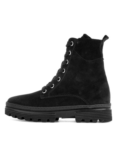 – zamsz- zapięcie: sznurowanie z bocznym suwakiem- noski: zaokrąglone- noski i zapiętki: wzmocnione- forma obcasa: blokowy- wkładka: wyjmowana- podeszwa: antypoślizgowa- szerokość buta: dla szerokich stóp