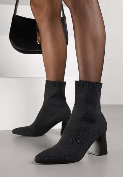 Czarne Botki Vices na Geometrycznym Obcasie z Elastyczną Cholewką Adinelle