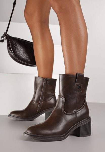 Ciemnobrązowe Botki na Obcasie Vices z Ozdobą Alerrise