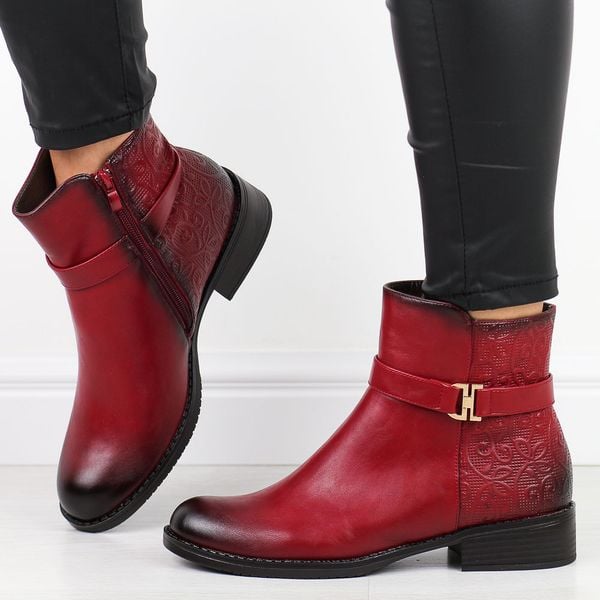 Czerwone płaskie botki damskie M.Daszyński Am48-69 23