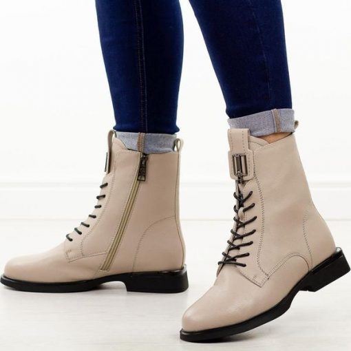 Beżowe skórzane botki damskie Vinceza 66834