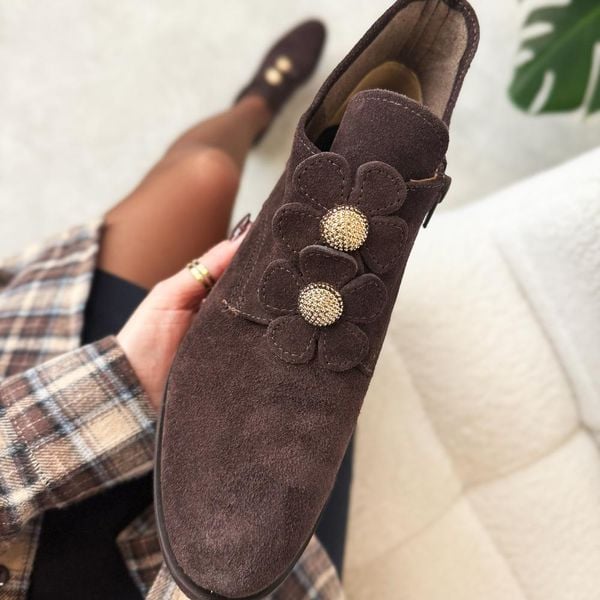 Czekoladowe skórzane botki damskieto stylowa i wygodna propozycja na chłodną wiosnę oraz chłodną jesień, stworzona z myślą o kobietach ceniących elegancję i komfort. Cholewka wykonana została z wysokiej jakości skóry naturalnej zamszowej, która prezentuje się wyjątkowo gustownie. Dodatkowo zdobią ją dwa subtelnie błyszczące kwiatki, dodając całości kobiecego uroku i oryginalnego charakteru. Model jest praktyczny w użytkowaniu […]