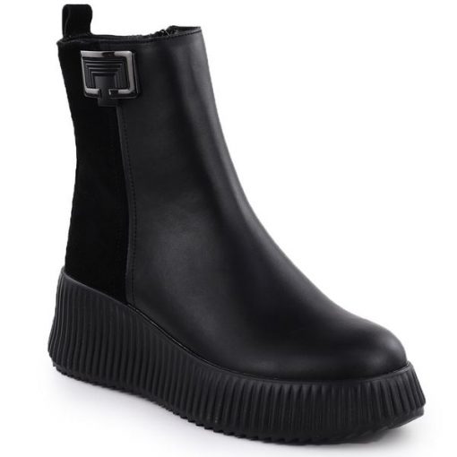 Skórzane botki damskie na koturnie czarne Filippo DBT7268