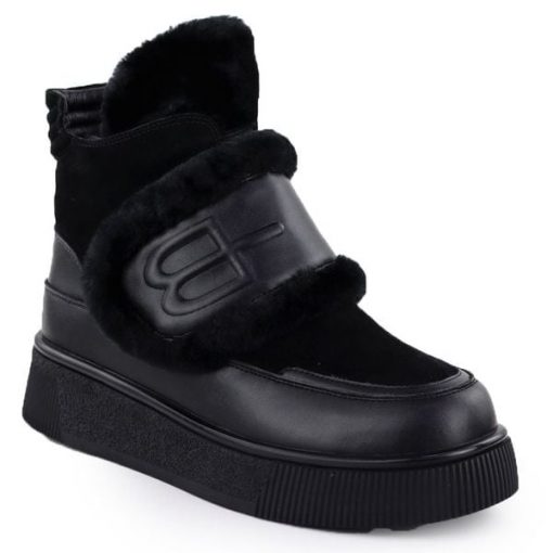 Skórzane botki damskie na platformie czarne Cambell 25-52331