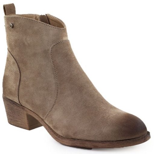 Botki damskie zamszowe na obcasie beżowe Potocki 25-12751