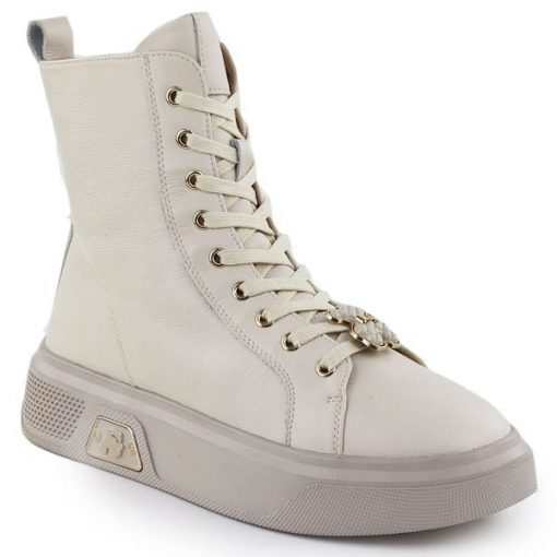 Skórzane botki na platformie z misiem beżowe Cambell 25-19349