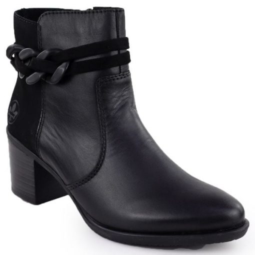 Skórzane botki damskie na słupku czarne Rieker Y2066-00