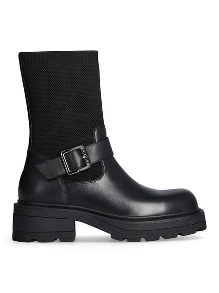 – materiał wierzchni ze skórzanymi wstawkami- zapięcie: sznurowanie z bocznym suwakiem- noski: zaokrąglone, wzmocnione- detale: ozdobna klamra- forma obcasa: blokowy- podeszwa: profilowana