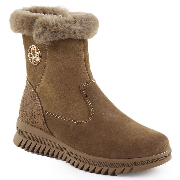 Skórzane botki damskie zamszowe z futerkiem brązowe Filippo DBT7271