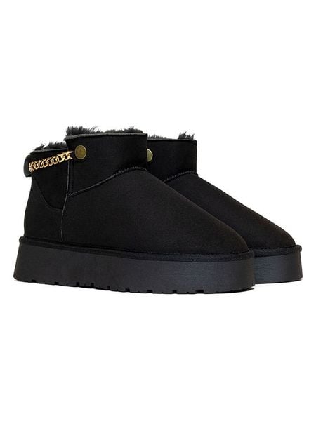 – zapięcie: bez- noski: zaokrąglone- noski i zapiętki: wzmocnione- detale: ozdobny łańcuszek, obszycie ze sztucznego futerka – forma obcasa: platforma- podeszwa: antypoślizgowa