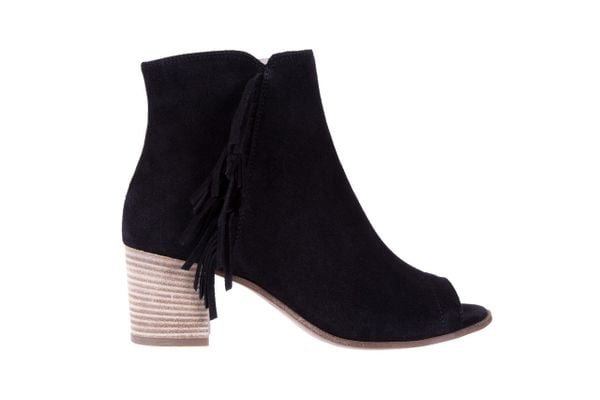 Botki marki Bayla. Cholewki wykonane z miękkiej skóry zamszowej w kolorze czarnym. Buty są lekkie, wygodne i pięknie prezentują się na nodze.- z boku zamek ułatwiający zakładanie obuwia- fason typu peep toe- skóra zamszowa- miękkie wkładki- doskonała jakość materiałów i precyzyjne wykonanie- ozdobione najmodniejszymi w tym sezonie frędzlami