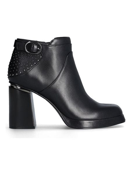 – zapięcie: suwak- noski: zaokrąglone- noski i zapiętki: wzmocnione- detale: ozdobna klamra- skórzana wkładka: tak- forma obcasa: blokowy