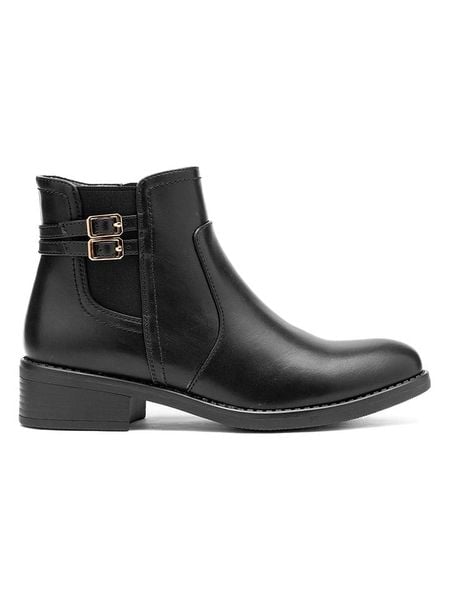 – zapięcie: suwak- noski: zaokrąglone- noski i zapiętki: wzmocnione- forma obcasa: blokowy- detale: ozdobna klamra- podeszwa: antypoślizgowa