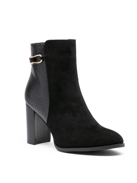 – zapięcie: suwak- noski: w szpic- noski i zapiętki: wzmocnione- forma obcasa: blokowy- podeszwa: antypoślizgowa