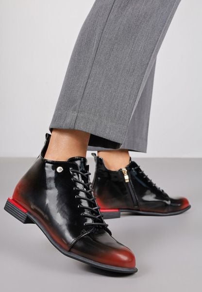 Czarno-Czerwone Lakierowane Botki Vices w Stylu Trzewików Jenisse