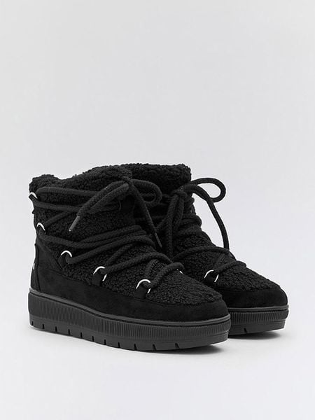 – zapięcie: sznurowanie- noski: zaokrąglone- noski i zapiętki: wzmocnione- detale: obszycie ze sztucznego futerka- dookoła gumowanie- podeszwa: antypoślizgowa