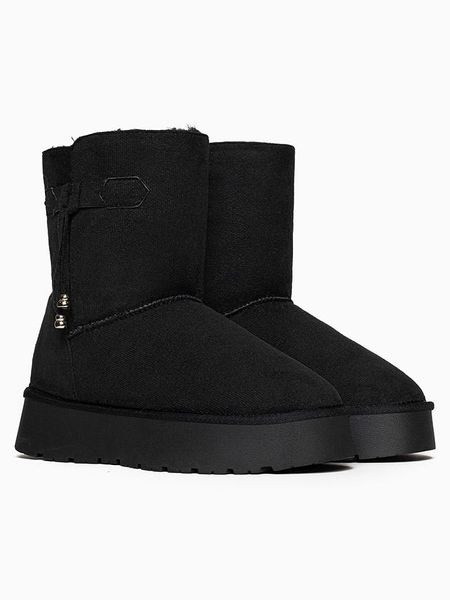 – zapięcie: bez- noski: zaokrąglone- noski i zapiętki: wzmocnione- detale: ozdobny pasek, obszycie ze sztucznego futerka- forma obcasa: platforma- podeszwa: antypoślizgowa