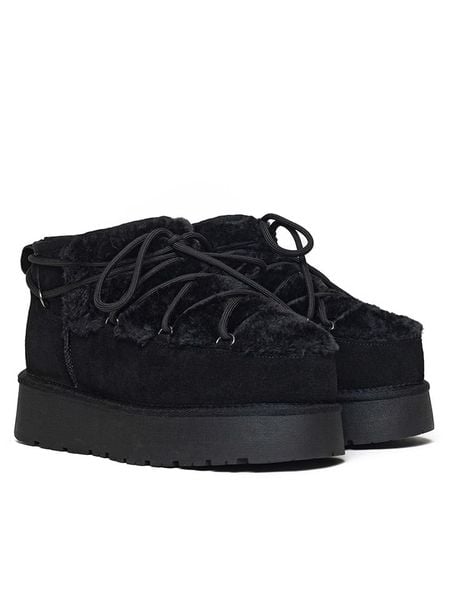 – zapięcie: bez- noski: zaokrąglone- zapiętki: wzmocnione- wyściółka: ogrzewająca wełna- forma obcasa: platforma- detale: ozdobne wiązanie- podeszwa: antypoślizgowa