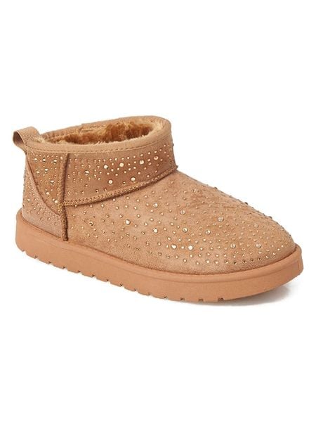 – zapięcie: bez- praktyczna szlufka ułatwiająca zakładanie- noski: zaokrąglone- noski i zapiętki: wzmocnione- detale: obszycie ze sztucznego futerka, połyskujące elementy- dookoła gumowanie- podeszwa: antypoślizgowa
