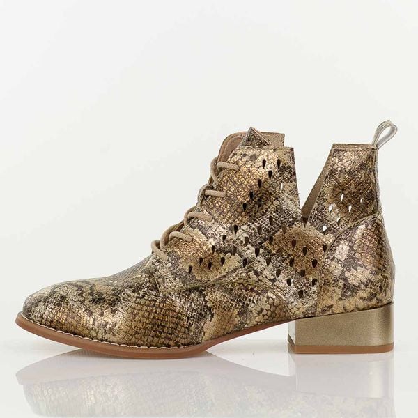 Złote wąż botki damskie na obcasie M.Daszyński Sa197-29
