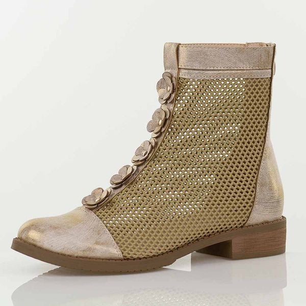 Złote wiosenne ażurowe botki damskie Jezzi Asa62-130