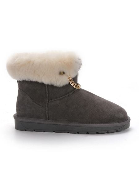 – zapięcie: bez- praktyczna szlufka ułatwiająca zakładanie- noski: zaokrąglone- noski i zapiętki: wzmocnione- wyściółka: ogrzewająca wełna- detale: dekoracyjny łańcuszek- podeszwa: antypoślizgowa