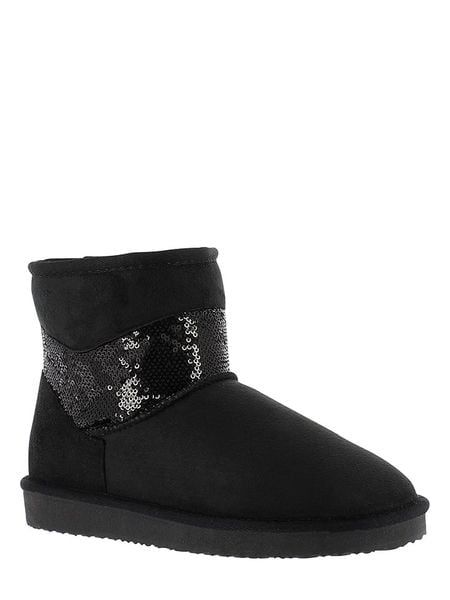 – wodoodporny materiał wierzchni o wyglądzie skóry welurowej („microsuede”)- zapięcie: bez- noski: zaokrąglone- detale: ozdobne i formujące szwy, cekiny- zapiętki: wzmocnione- wyściółka: ciepła- forma obcasa: platforma- podeszwa: antypoślizgowa- kolor producenta: black